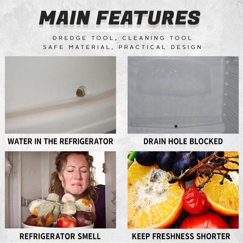 Herramienta de Limpieza - Después de desatascar el orificio, puede utilizarla para verter agua y limpiar el orificio de desagüe. Ayuda a evitar que su frigorífico huela mal.