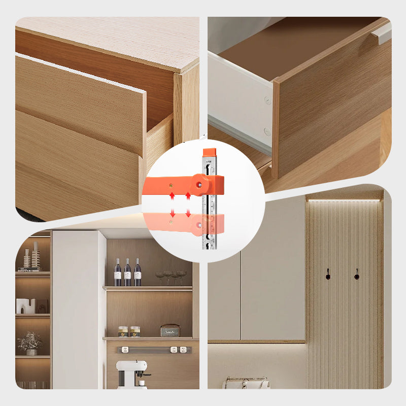 DISEÑO AMIGABLE:Caracteriza una guía reversible (1-15 cm ajustable) con imanes incorporados para operación sin herramientas. Vuelvela para instalaciones de armarios sin mango, adaptándose a cualquier estilo de cajón mientras mantiene las manos libres para ajustes precisos.