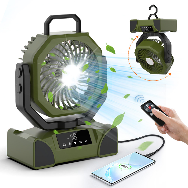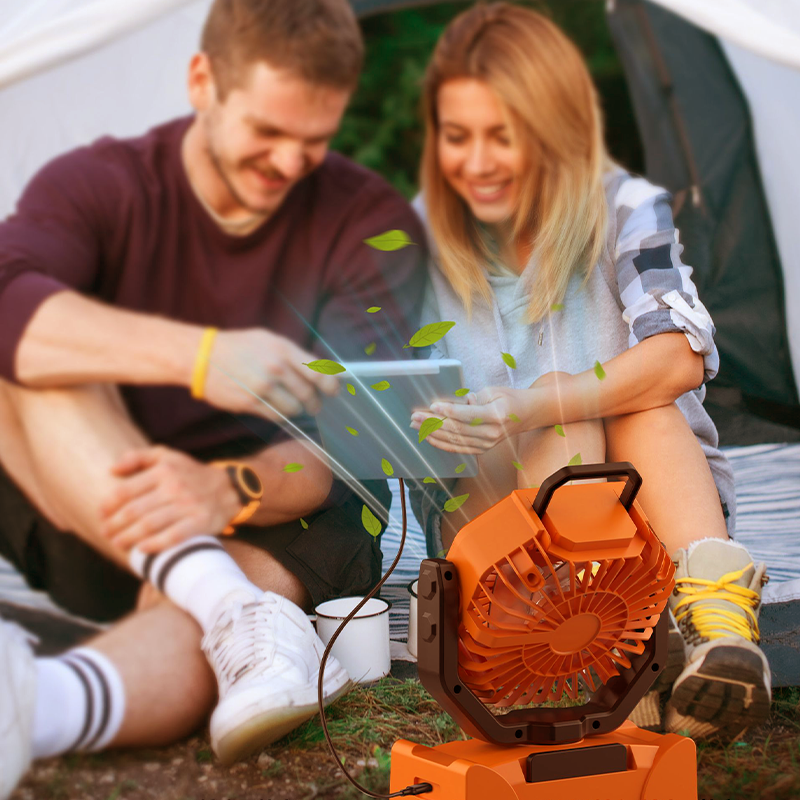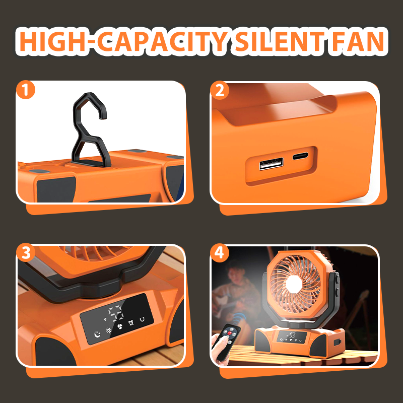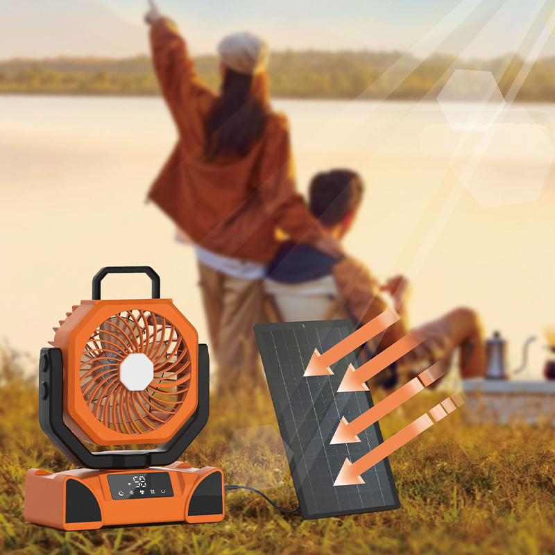 BATERÍA DE ALTA CAPACIDAD Y CARGA SOLAR - Equipado con una batería de gran capacidad incorporada, este ventilador ofrece un tiempo de funcionamiento significativamente extendido. Una sola carga proporciona un uso prolongado, y también admite carga solar, lo que lo hace perfecto para campamentos al aire libre, viajes o cortes de energía de emergencia, ofreciendo un alivio fresco duradero cuando lo necesites.