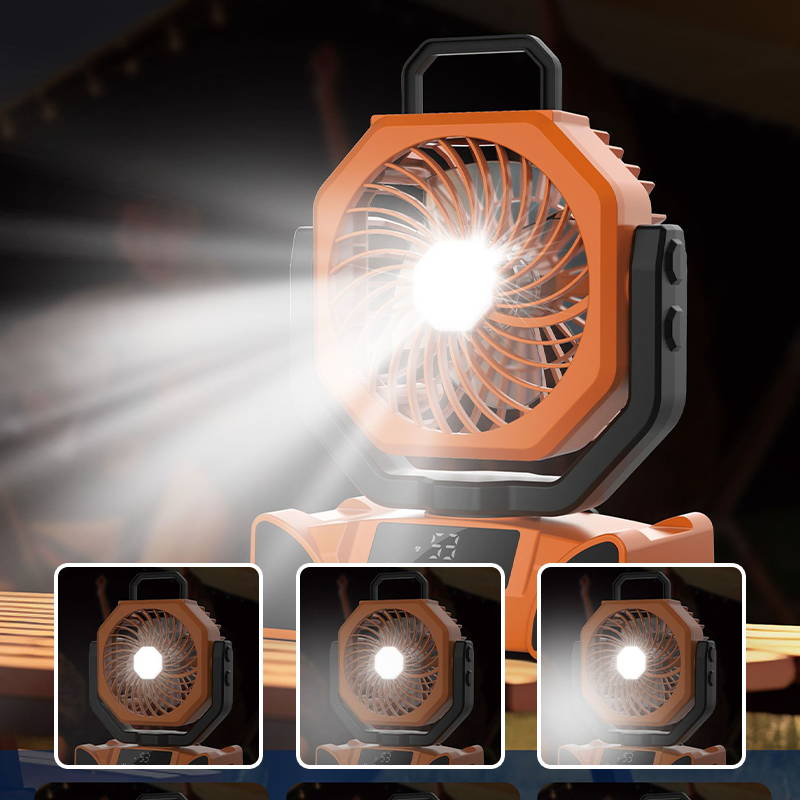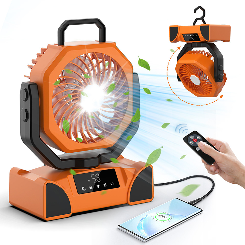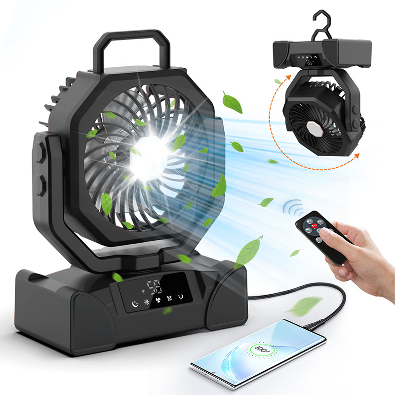 ILUMINACIÓN Y BANCO DE ENERGÍA DE EMERGENCIA - Este ventilador cuenta con una luz LED ajustable en 3 niveles, proporcionando tanto comodidad de enfriamiento como iluminación nocturna. Además, puede cargar tus otros dispositivos a través de puertos USB y Type-C, funcionando como ventilador y banco de energía. Disfruta de la brisa mientras mantienes tus dispositivos cargados.