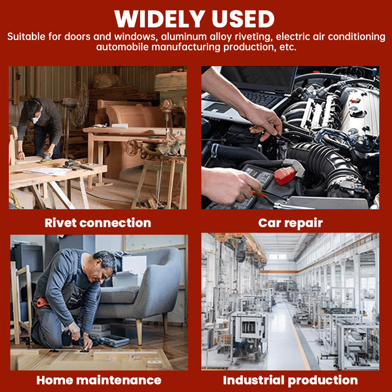 Ya sea que trabajes en reparaciones en casa, proyectos automovilísticos o construcciones caseras, es la forma más inteligente de conseguir remaches fuertes y seguros con menos trabajo.