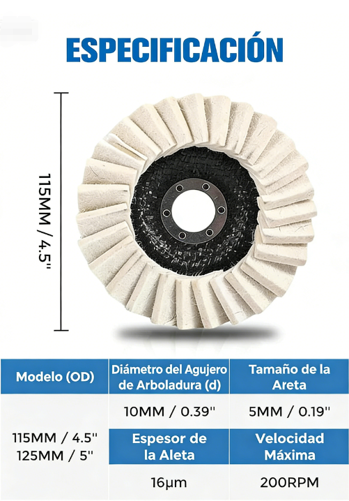 AMPLIA APLICACIÓN: este disco de pulido de lana con láminas de fieltro está diseñado para el pulido final de la superficie del artículo para lograr un acabado brillante o tipo espejo. También se puede utilizar para reparar las marcas de desgaste dejadas por el proceso anterior para que la superficie pulida logre un efecto espejo. Trabajo ideal para acero inoxidable, aluminio, latón, acero, trabajos automotrices, metales no ferrosos, madera y piedra, etc.