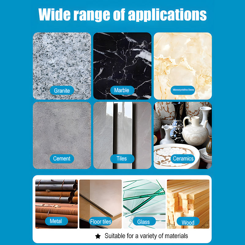 AMPLIA APLICACIÓN: Compatible con diversos materiales como azulejos, cerámica, granito, mármol, hormigón, metal, vidrio y madera para moler, renovar, cantear y desbarbar.